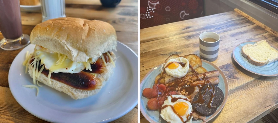 Superb brekkie here today, big mugs of tea, huge portions, amazing fried bread too. Bacon great too, we will be back. Thank you ladies