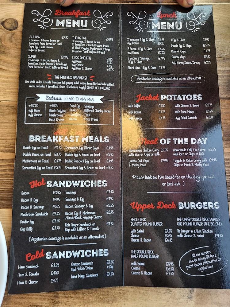 The Upper Deck Diner is a quirky establishment located just off the busy A38 in Tewkesbury, GL20 6HB. This diner is not just any eatery; it’s situated in a refurbished double-decker bus, providing a one-of-a-kind dining experience. This diner thrives on creating a community spirit among its patrons. With easy access to the nearby lay-by, it welcomes a steady stream of locals and travelers alike. The diner opens its doors every day of the week, welcoming breakfast lovers and lunch seekers looking for a quick and satisfying meal. Parking is hassle-free, with free street parking and a dedicated lot available for customers. The vibrant atmosphere and friendly encounters with staff add to the diner’s charm, making each visit feel welcoming and warm. The cheerful crew often brings their personality into the kitchen, sharing laughs and good vibes that resonate through the diner.